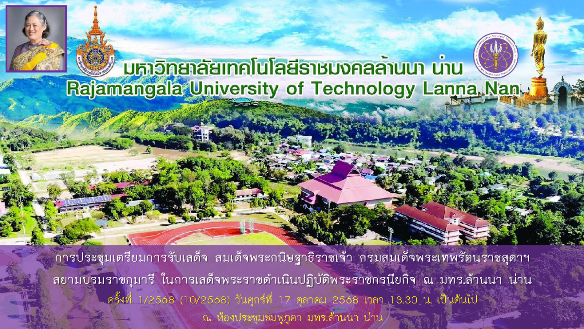 โลโก้เว็บไซต์ 17 ต.ค. 68 ประชุมเตรียมการรับเสด็จ สมเด็จพระกนิษฐาธิราชเจ้า ครั้งที่ 1/2568 (10/2568) | มหาวิทยาลัยเทคโนโลยีราชมงคลล้านนา น่าน