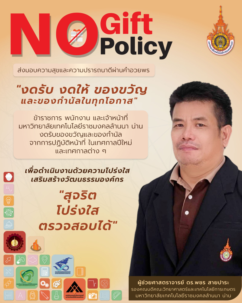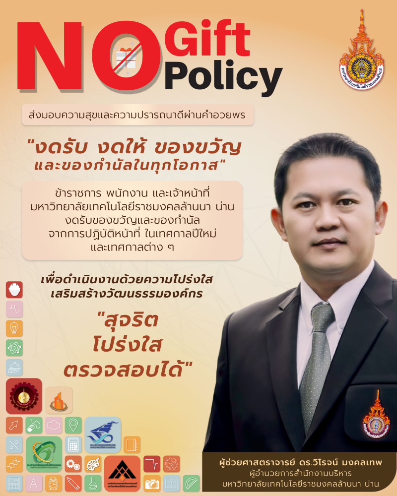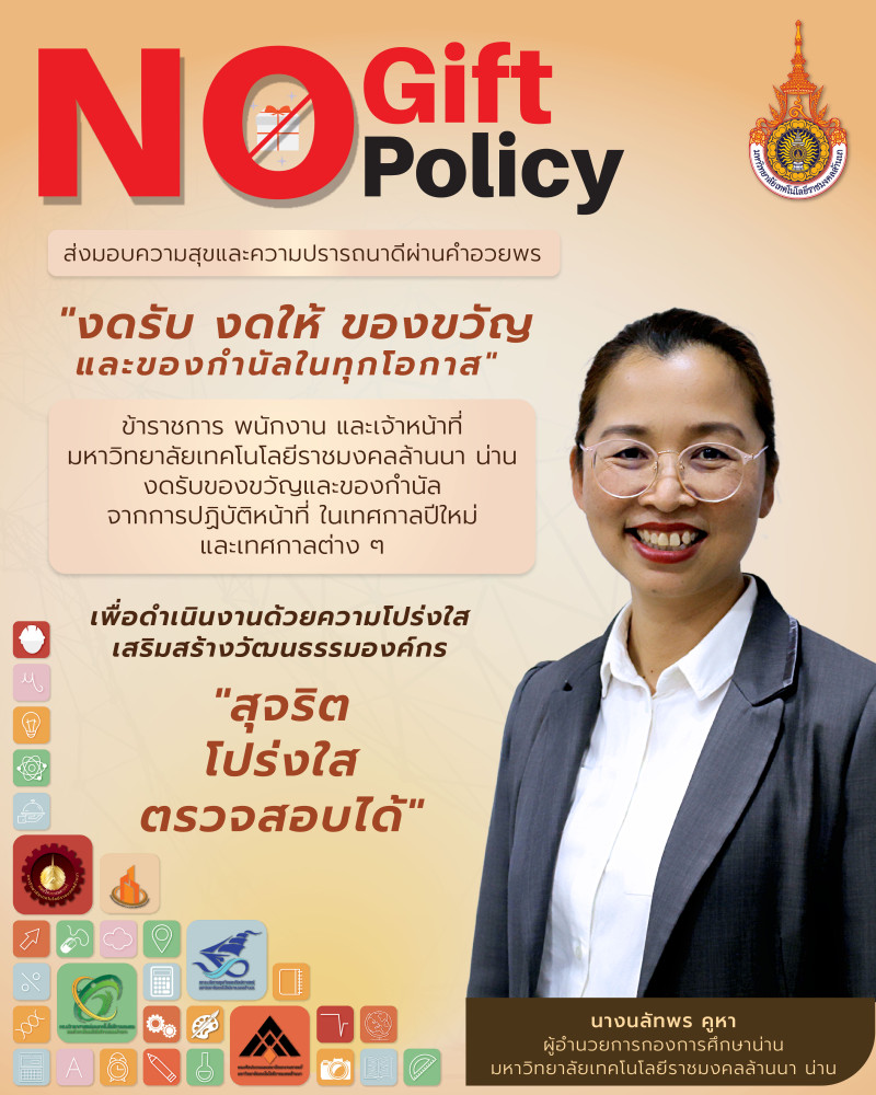 โลโก้เว็บไซต์ No Gift Policy 2568 | มหาวิทยาลัยเทคโนโลยีราชมงคลล้านนา น่าน