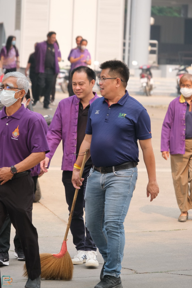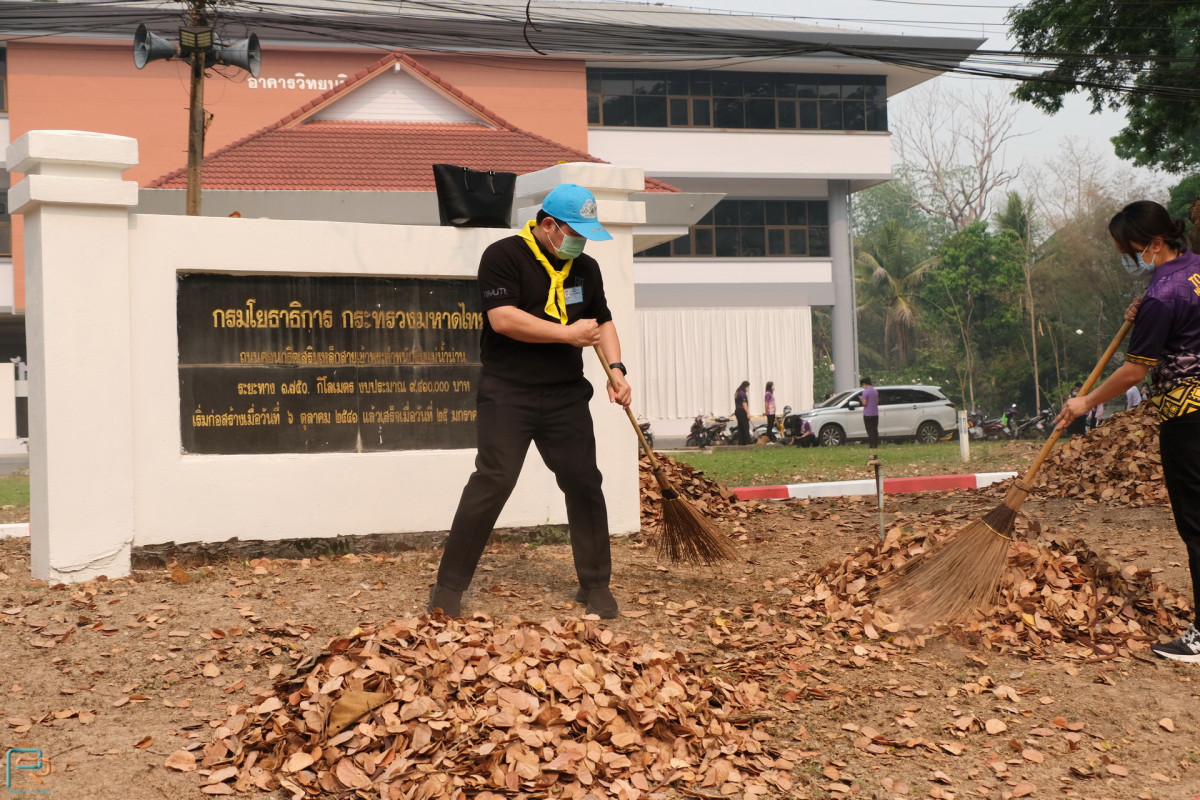 จากนั้น ผู้อำนวยการสำนักงานบริหารมหาวิทยาลัย นำคณะผู้บริหาร คณาจารย์ บุคลากร นักศึกษา และจิตอาสาพระราชทาน ร่วมทำกิจกรรมบำเพ็ญประโยชน์ บริเวณรอบอาคารวิทยบริการและบริเวณด้านหน้ามหาวิทยาลัย