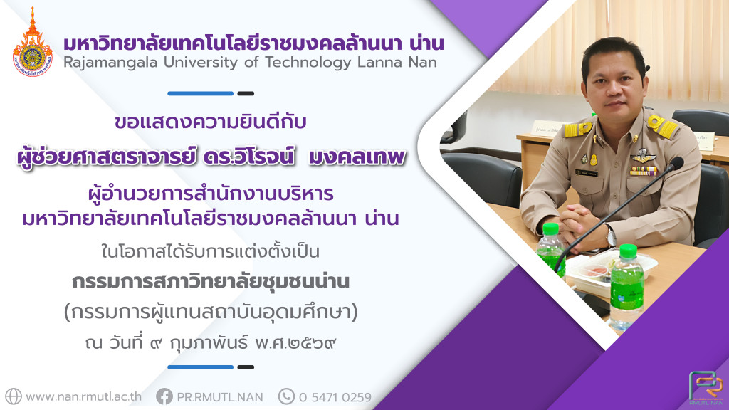 มทร.ล้านนา น่าน ขอแสดงความยินดีกับทั้ง ๒ ท่าน