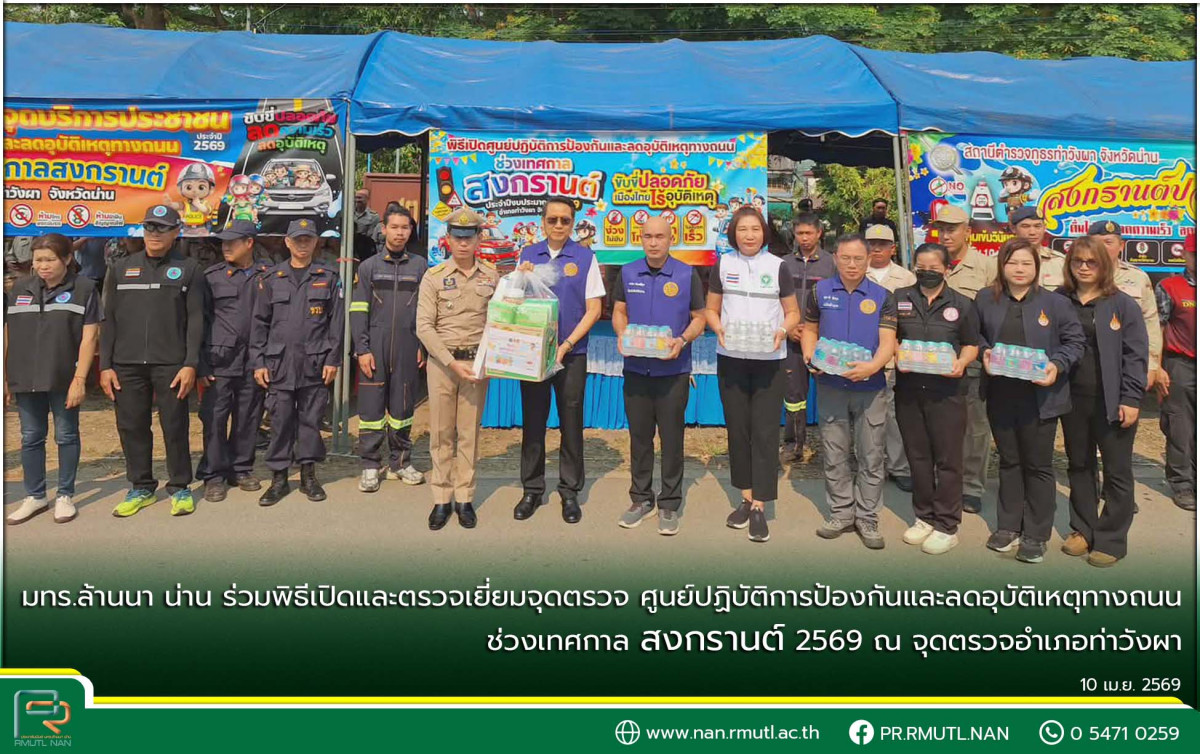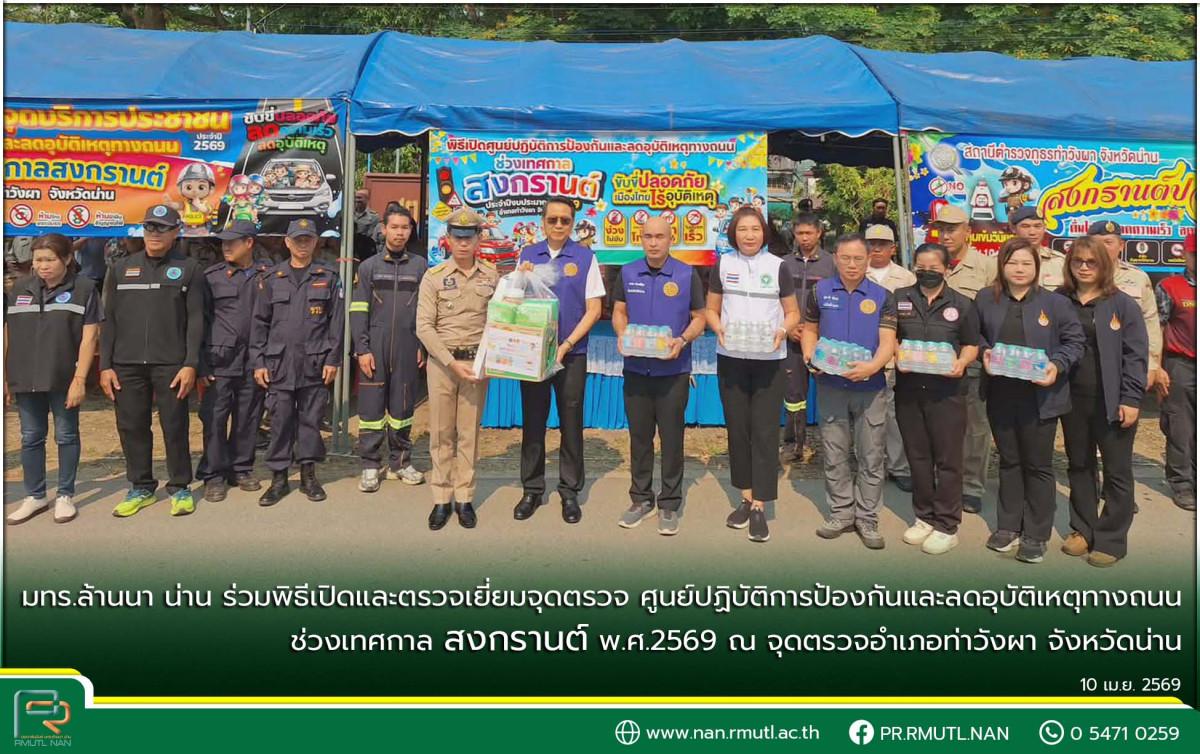 มทร.ล้านนา น่าน ร่วมพิธีเปิดและตรวจเยี่ยมจุดตรวจ ศูนย์ปฏิบัติการป้องกันและลดอุบัติเหตุทางถนน ช่วงเทศกาลสงกรานต์ พ.ศ.2569 ณ จุดตรวจอำเภอท่าวังผา จังหวัดน่าน