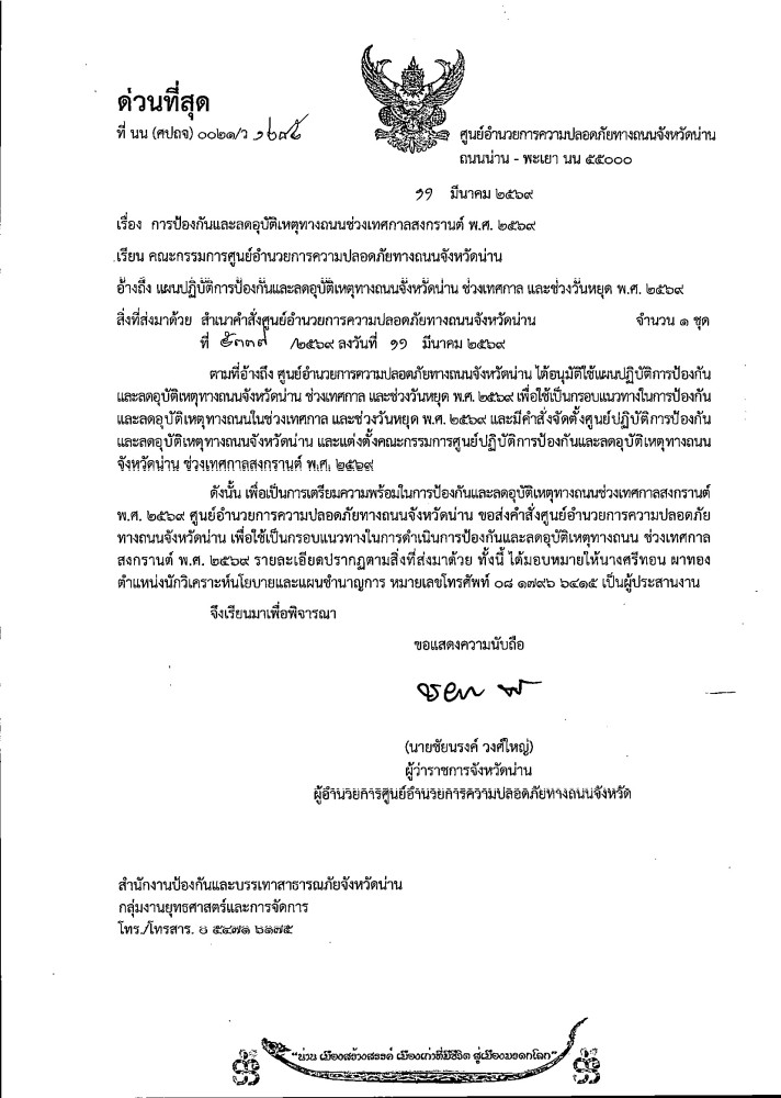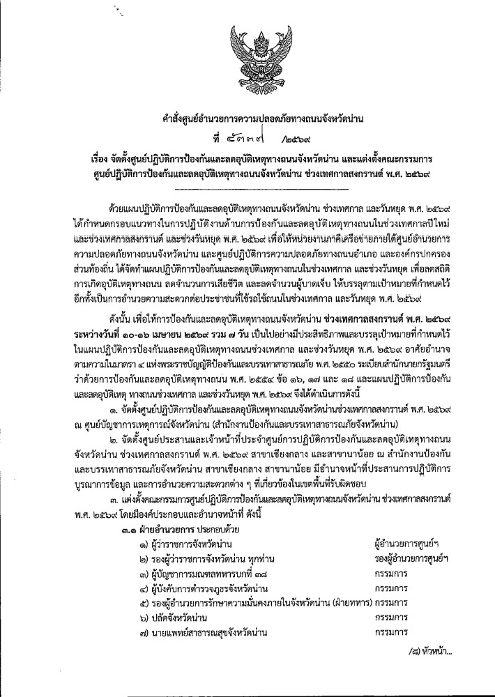 #ศูนย์ปฏิบัติการป้องกันและลดอุบัติเหตุทางถนนจังหวัดน่าน